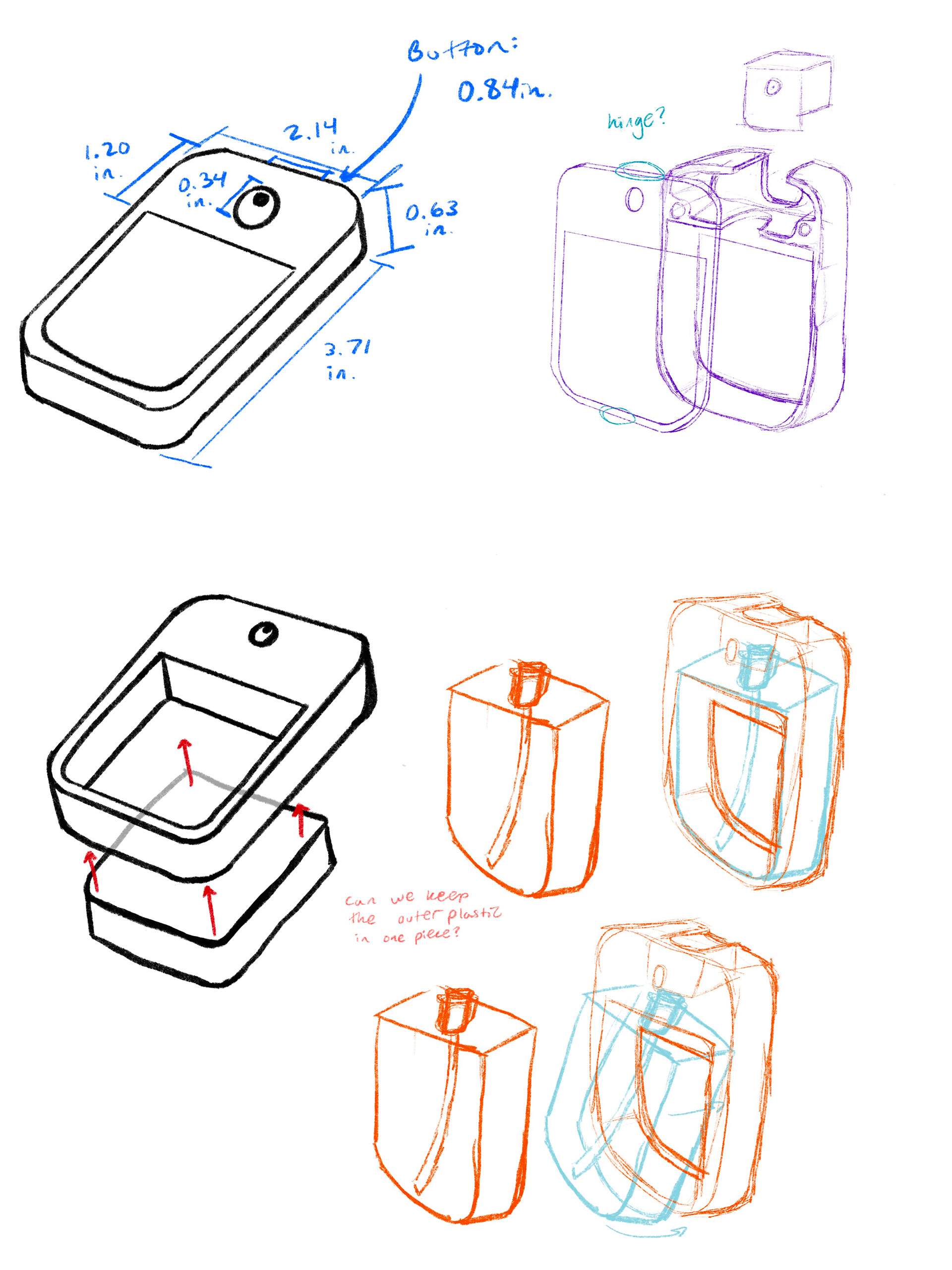 My first step was to measure an existing Power Mist hand sanitizer bottle to collect the correct dimensions. Then I moved onto preliminary sketching and ideation