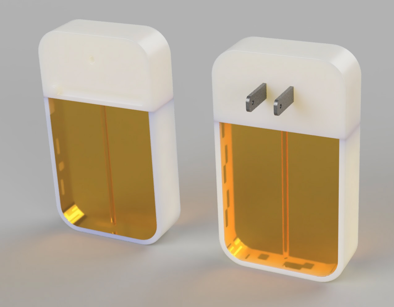 The next step was to create preliminary renders of the device. At this stage, there was a scent intensity slider, and the prongs could not fold in.